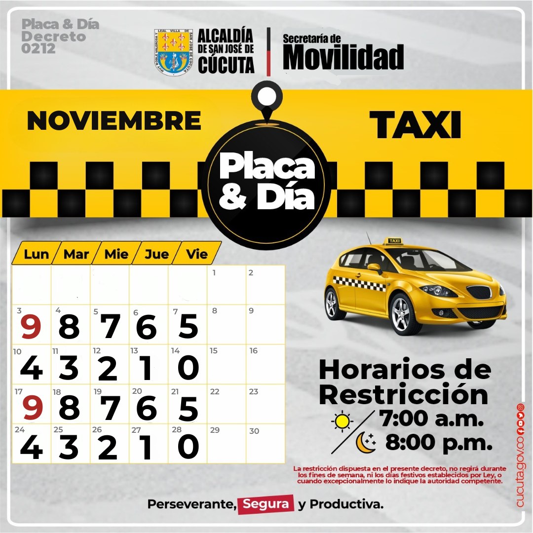 ASOEMPRESAS CÚCUTA informa a sus afiliados y a toda la comunidad de conductores de taxi que durante el mes de septiembre de 2025 se aplicará el calendario de restricción vehicular establecido por la Secretaría de Movilidad del municipio. El horario definido es de 7:00 a.m. a 8:00 p.m., de lunes a viernes, con el fin